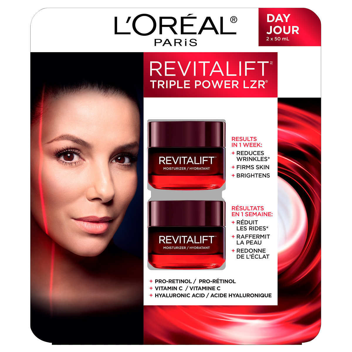 欧莱雅Revitalift Triple Power LZR抗衰老面部日霜,2 x 50毫升