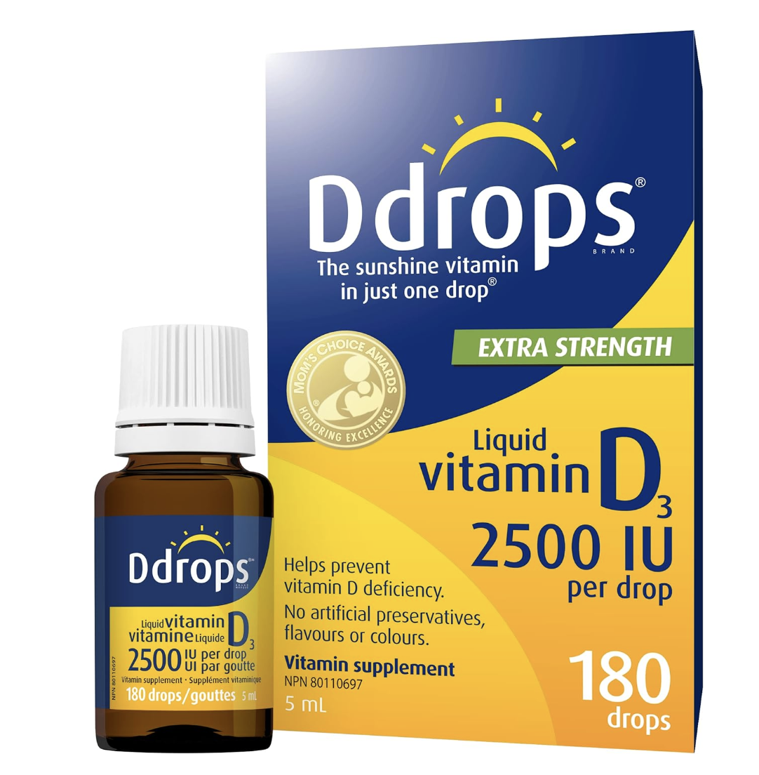 Ddrops Adults 2500IU Liquid Vitamin D3 Drops, 180 drops.